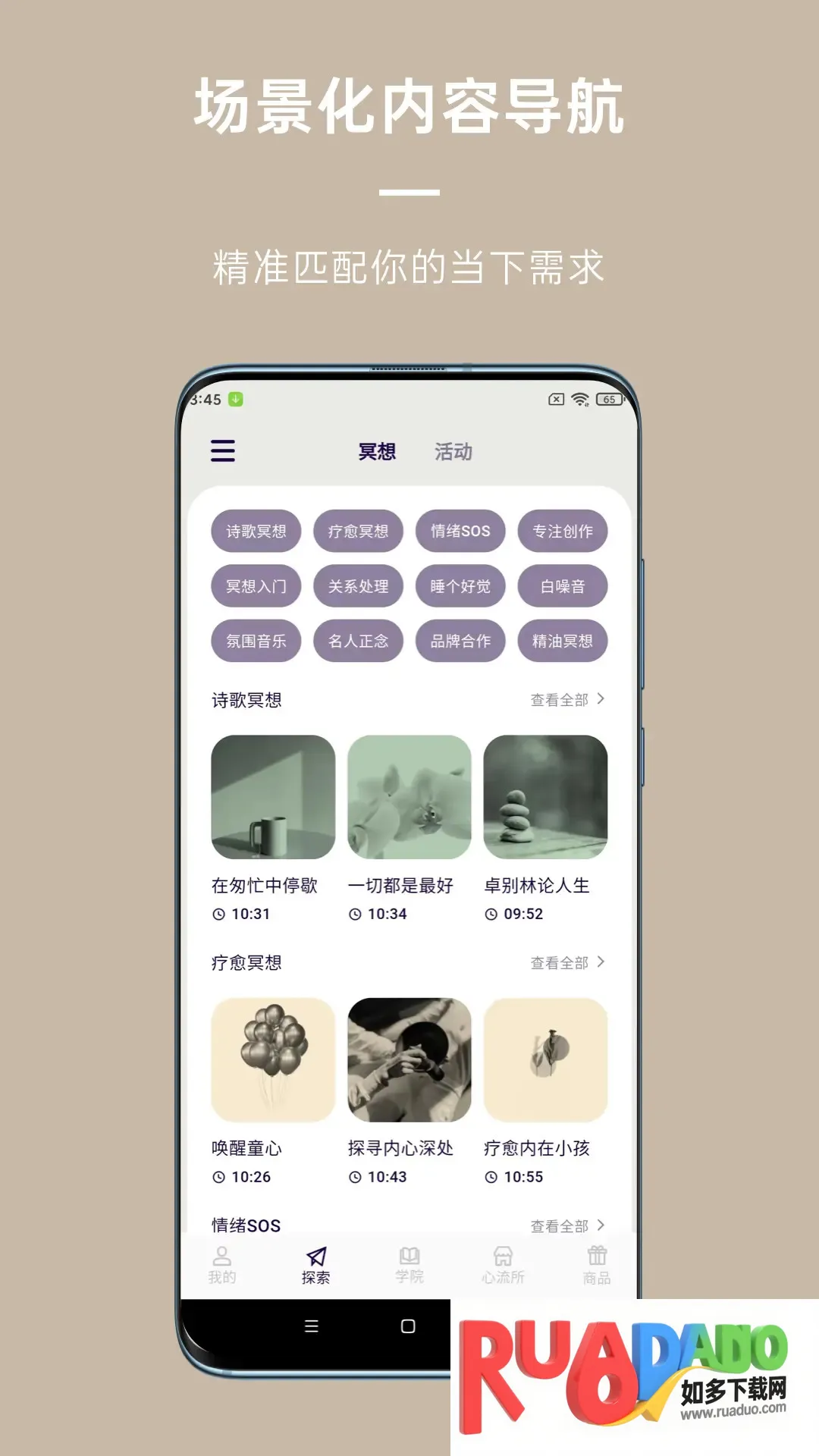 3、其冥想内容丰富,在不同场景都有对应内容可选,还能应对烦躁、生气、焦虑等不同情绪。