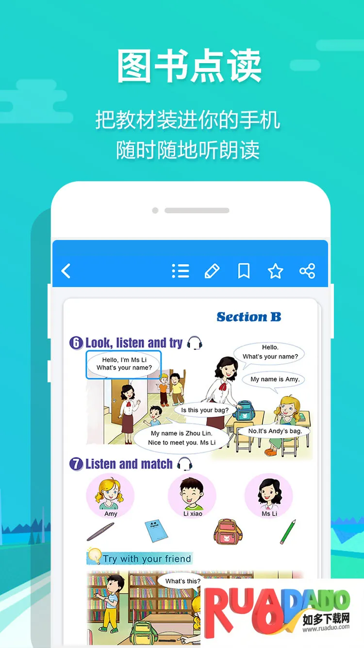 3. 知识积累便捷:将教材内容装进口袋,可随时随地听读课文,阅读学习两不误,高效利用碎片时间积累知识。