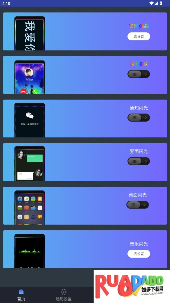 4、来电酷炫效果:接电话呈现视频与边缘闪光,可修改来电视频背景、闪光样式,编辑来电信息,支持自定义。