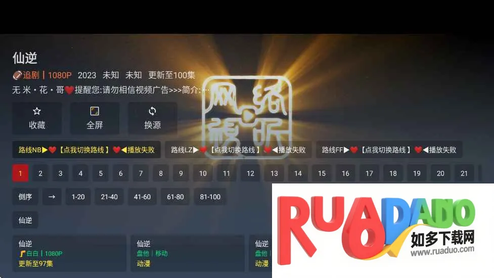 4、体验良好:支持多清晰度、多播放线路,还能离线缓存,免费版少量广告不影响核心功能。