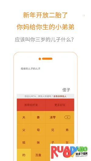 3、功能实用:提供专业计算方法,经过测试和认证,支持常见关系称谓计算,还可多个亲戚叠加计算复杂关系。