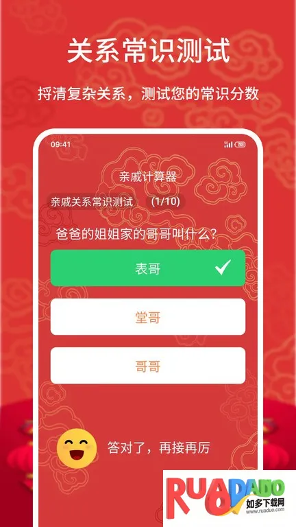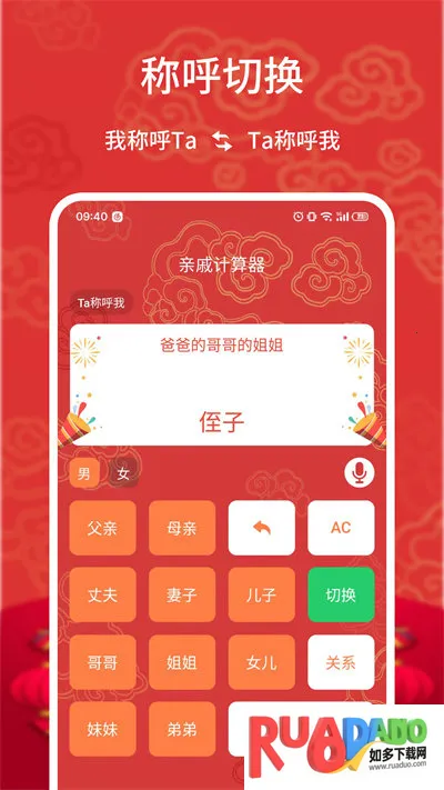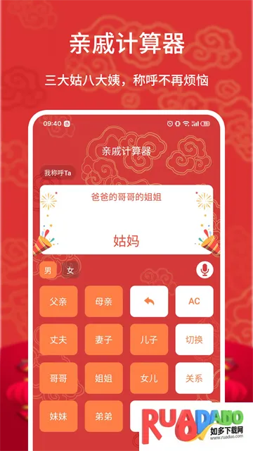 1. 该版本无广告且免费,能防尴尬,可依据近亲计算对方辈分,无论多远的亲戚都能快速显示称呼。