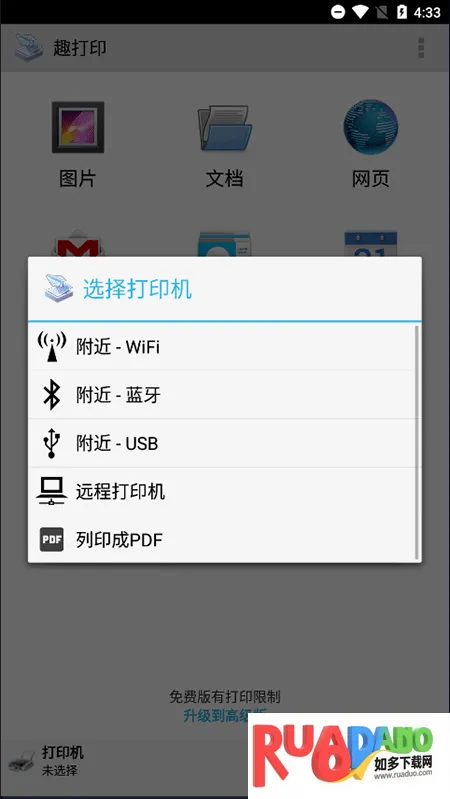 PrinterShare(手机便捷打印),又名趣打印,是一款功能强大的安卓打印软件。支持多种连接方式,可打印多种文件格式。免费版有测试、云打印等功能,高级版可无限打印。界面简洁,操作方便,适配多种打印机。