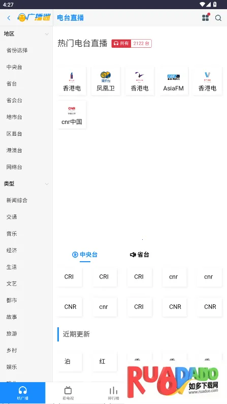 4、具备强大分类筛选功能,可根据地区类型等条件快速找到喜欢的广播源,还能设置睡眠模式,指定时间后自动降低音量直至停止播放。