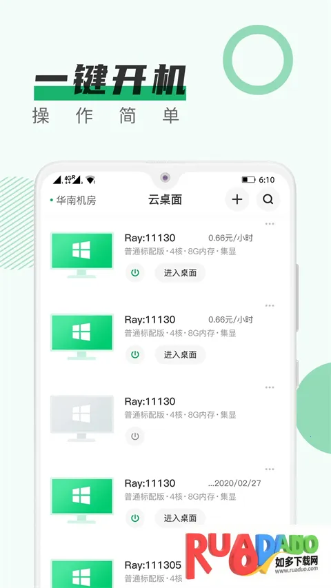 添加完成,点击开机按钮,开机成功后即可点击“进入桌面”享受您的专属云端工作站了。