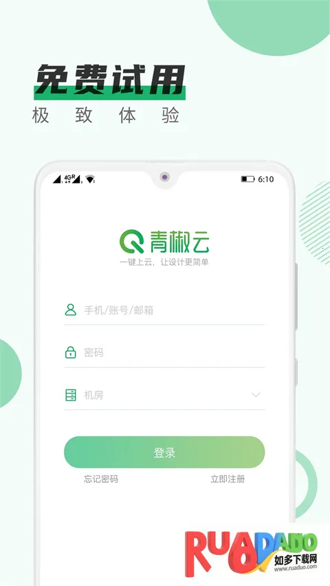 打开青椒云app,跳过导航页进入到登陆页面,点击立即注册。