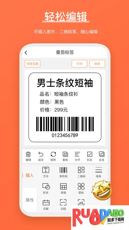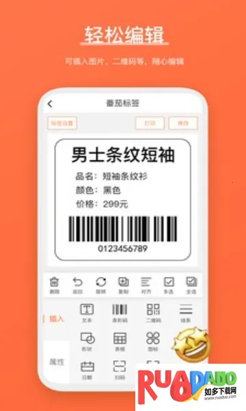 1. 界面清晰操作简单,支持多种元素插入及单排多排标签打印,对齐功能助快速编排。