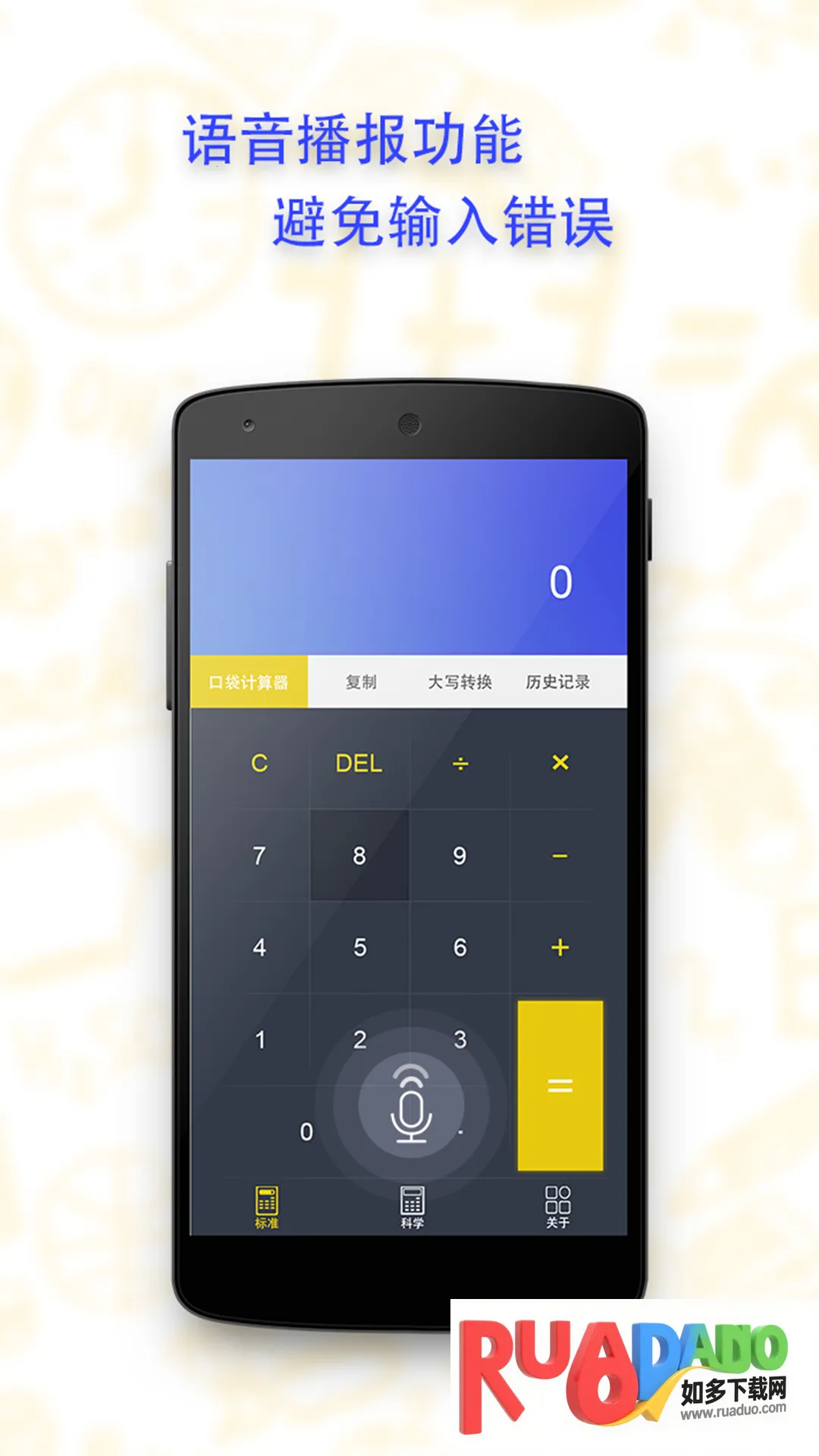 口袋计算器2025是一款全能手机计算器应用。集基础与科学计算于一身,有语音播报防误操作,支持一键复制结果。界面简洁,运行流畅,还能记录历史数据,满足日常及高级计算需求,提升工作学习效率。