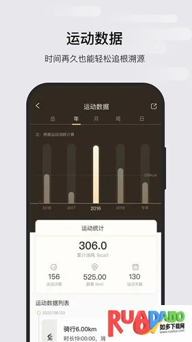 2. 数据可视化呈现,按日、周、月、年生成运动趋势图表,直观展示运动量变化,还能定制个性化计划。