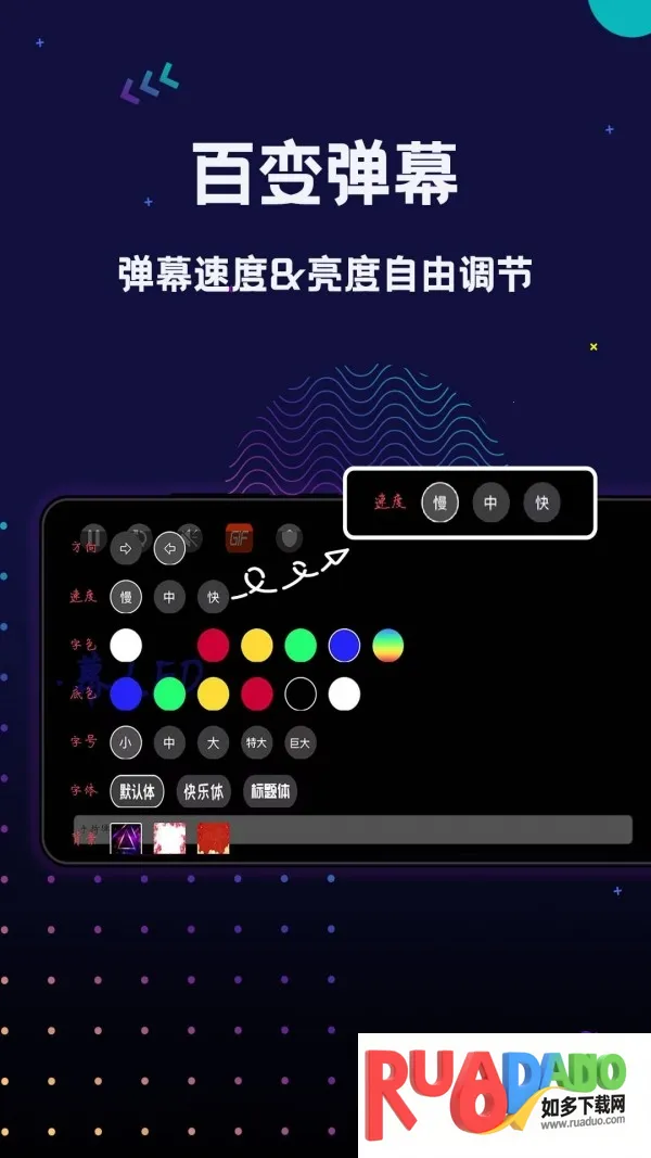 3、能自由调节弹幕的滚动速度、字体亮度,设置滚动弹幕时还可对滚动方向等进行调节,满足多样需求。