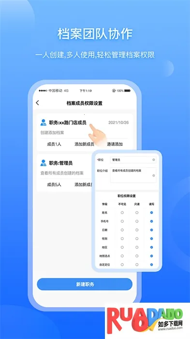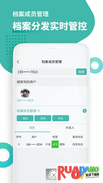 4. 支持档案人员管理,可设置人员档案权限,抄送人能管理档案状态,大量公开模板与选项免费使用。