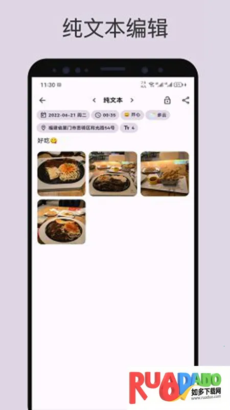 3. 能满足记录美好时光需求,提供多种日记格式,图文结合,还可自动获取天气和定位。