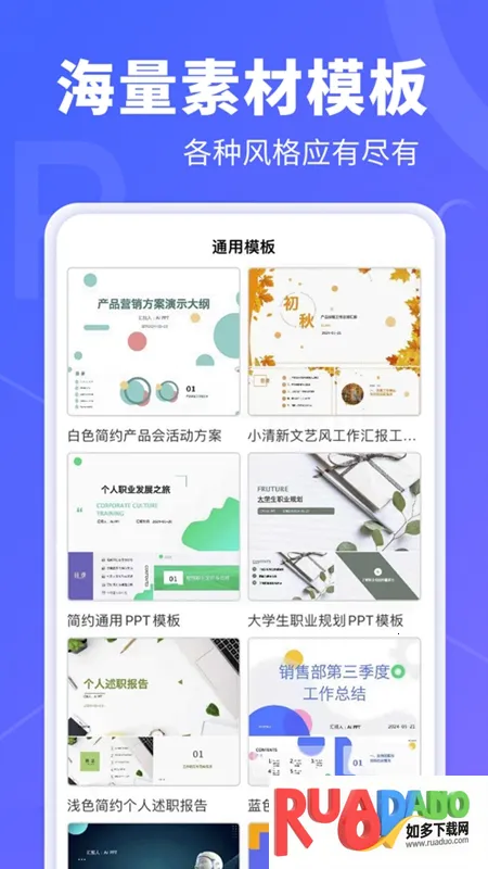 2. 提供海量专业模板素材,覆盖多领域,风格多样。