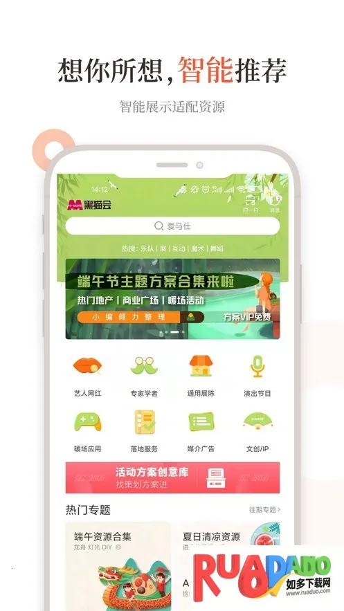1. 黑猫会APP资源超丰富,有海量公关活动资源,涵盖明星、网红、专家演出等。