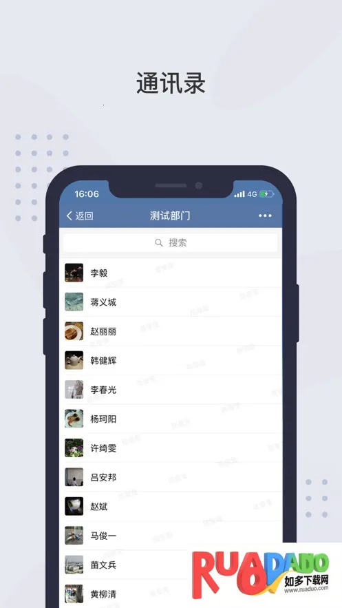 4. 统一通讯录:能直接在软件内获取公司人员通讯录及基本资料,便于通知工作。