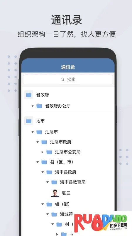 1. 统一通讯录系统整合了全省统一的通讯录,解决了跨单位跨层级跨地域找人的难题。