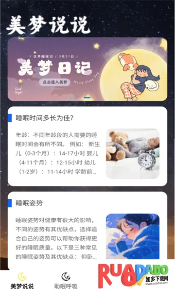 1. 不管是失眠还是想放松,软件都能带来更多温馨。