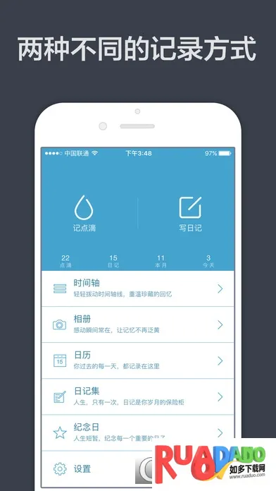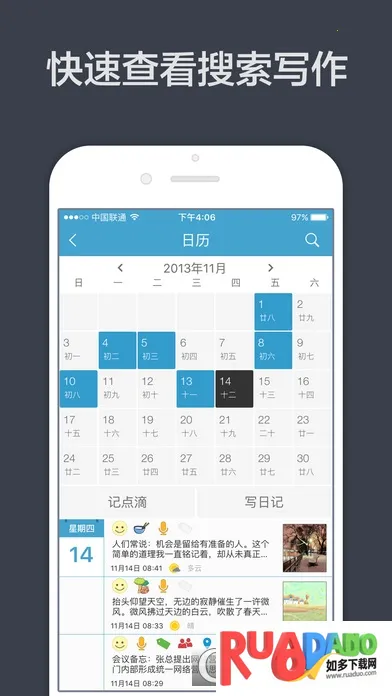 3. 可查看十年中某一天发生的事情,打造个性日记。