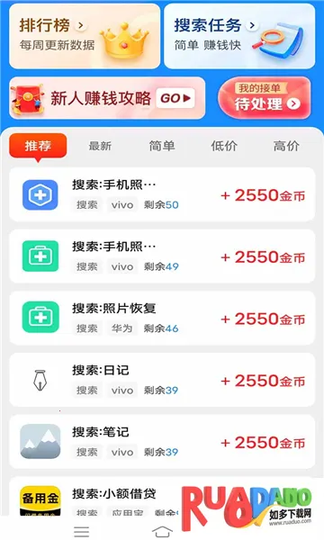 星空赚动 2025 官方最新版本是一款兼职任务软件,运行环境简洁无广告,体积小不占内存。注册登录方便,每天任务多,推广可赚收益,操作简单,提供多样赚钱方式,账号管理便捷,搜索功能强大,任务更新及时。