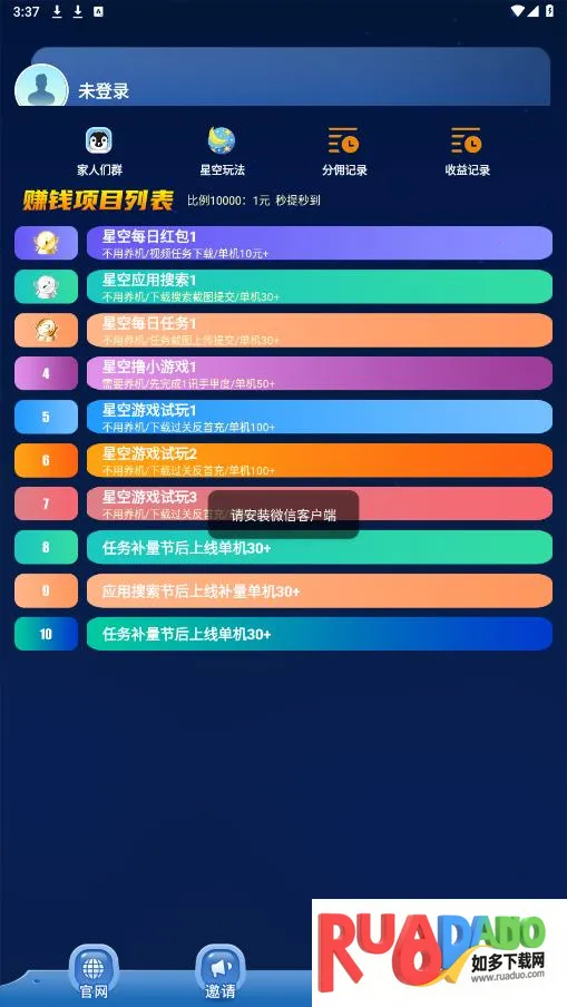星空赚动 2025 官方最新版本具备这些优势,能为用户提供简洁高效的兼职体验,无论是日常做任务还是推广项目,都较为便利,能让用户轻松利用闲暇时间赚取收益,实现赚钱梦想。