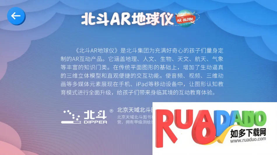 北斗AR地球仪2025是一款利用AR增强现实技术开发的益智早教产品。以地球为平台,涵盖多领域知识体系,有恐龙、动物、建筑等多种模块,通过虚实结合让孩子轻松学知识,还能答题巩固,助力孩子学习成长。