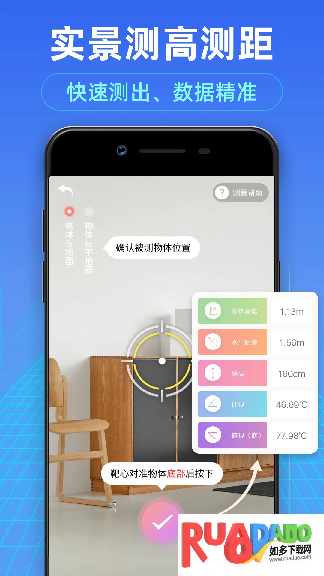 尺子测距仪最新手机版功能多样且实用,能满足多种测量需求,单位换算也很方便,众多工具和计算功能集于一身,是款不错的手机测量软件。