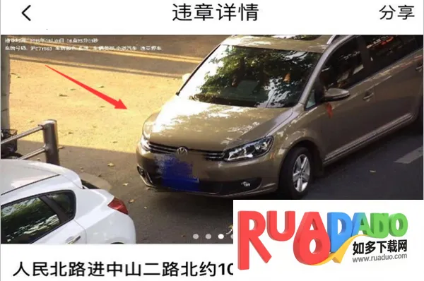 6、进入到该违章的详细界面以后就可以看到自己车辆违章的详情以及照片了。