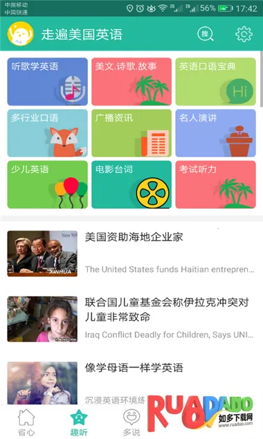 3. 应用提供全集音频、中英同步字幕、随点随读功能,支持iOS、Android系统,通过生活化场景提升英语听说读写能力,尤其适合备考托福或日常交流学习者。