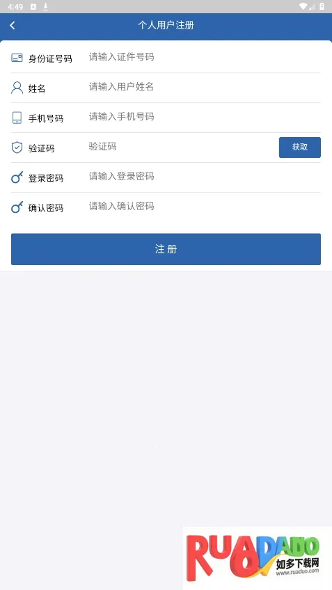 4. 操作流程清晰,首次登录用户点击注册,正确填写信息后注册成功,输入身份证号和密码登录,登录成功后在 APP 首页点击相关按钮可进行追加资格证等操作,且有详细注意事项。