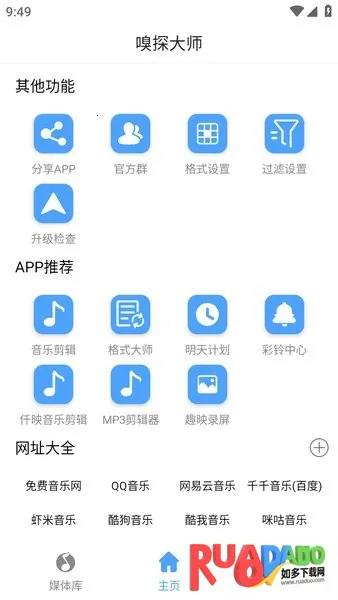 嗅探大师是专注音乐嗅探的手机应用,有音乐识别、剪辑、格式转换等功能及彩铃中心。能按听歌习惯推荐,支持分享、建个人音乐库、实时歌词。搜索强大,内容免费下载,有在线预览,还提供解决音乐找不到的方法。