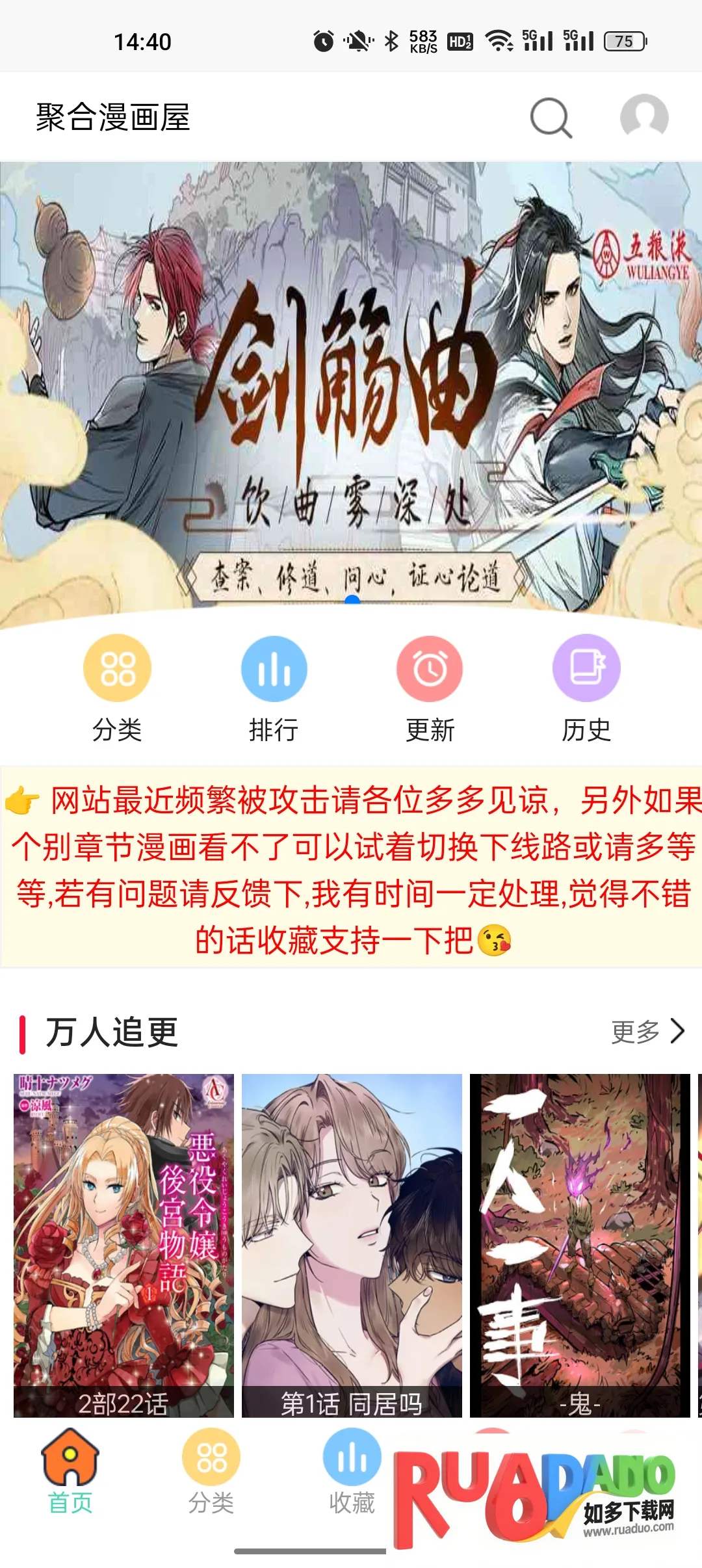 如果你想找聚合漫画屋无广告版的下载渠道,那你可来对地方啦!聚合漫画屋app是个超棒的漫画阅读平台,资源超丰富,各种类型的漫画都有,能满足不同人的口味。它功能强大,有一键快速阅读,能自动跳过广告,让你畅快看漫画。支持多种下载渠道,还能一次下载多部漫画,提升下载效率。而且有自动备份功能,在新设备上能快速恢复漫画收藏和浏览状态。这里无需会员就能实时阅读精彩作品,限时免费区内容海量。它界面设计精美,操作简单,分享也方便。有强大的反盗版机制,保障漫画原创者权益,推荐系统还很智能,会按你的喜好推荐漫画。找到无广告版下载渠道后,就能尽情享受无干扰的漫画阅读时光,随心所欲地沉浸在各类精彩漫画故事中啦。