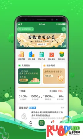 1. 灵猫是杭州灵猫数智科技有限公司旗下产物,为居民提供免费可降解垃圾袋领取和预约上门回收服务。