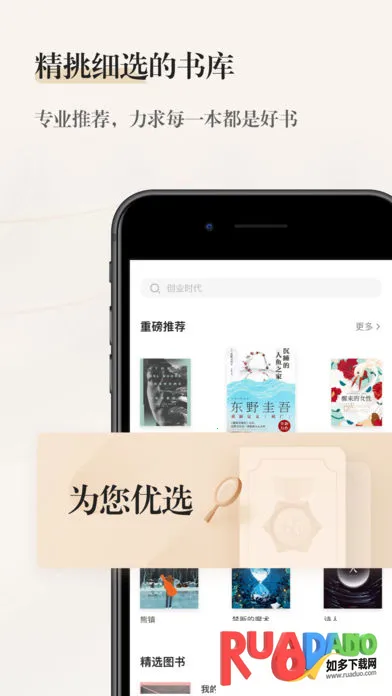 掌阅精选是掌阅旗下专注精品书籍阅读服务的软件。提供海量电子书,涵盖多类型。有社交阅读、数据统计等功能,新用户注册有福利,阅读设置丰富,排版质量优,支持买后7天无理由退书。