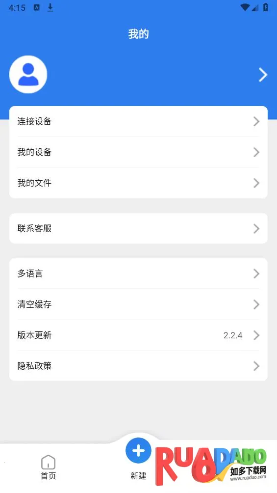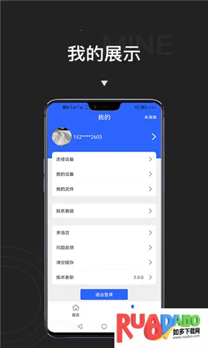4. 操作路径清晰,功能分类明确,管理设备、查看文件与联系客服便捷。