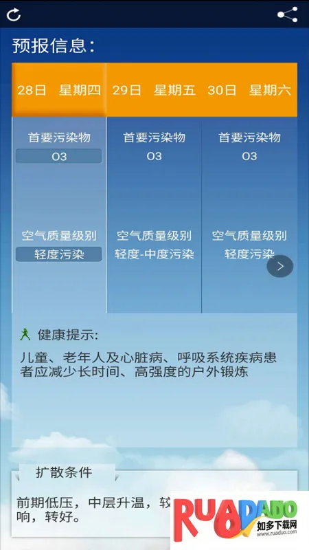 3. 可查询多地区空气污染指数趋势图、实时浓度等,信息丰富。