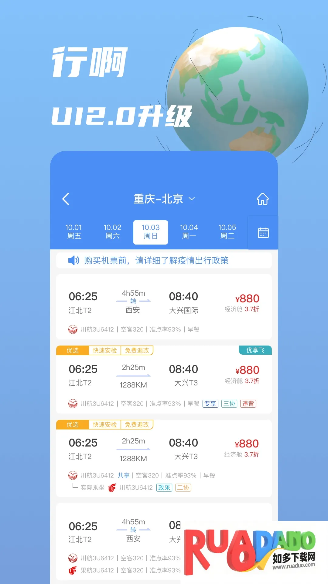 4. 快速便捷的航班查询功能,随时筛选出满意舱位和航空公司。