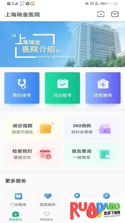 2. 通过瑞金医院的手机APP,用户可在线查询,不需要到医院去排长队。