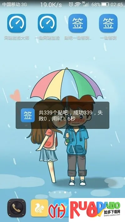 3. 无需进入应用,点击桌面快捷键0.01秒即可在后台自动签到,采用谷歌最优化网络交互,签到完成有提示。