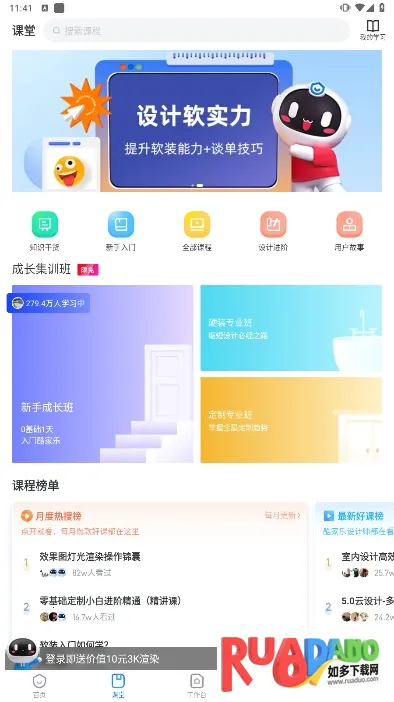 1. 免费学习海量视频教程,可迅速掌握室内设计技能。