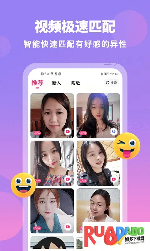 汇缘交友是一款优质手机社交聊天软件,汇集海量优质单身用户。提供多种交友方式,支持自由匹配、附近的人搜索等。能随时分享生活,畅聊感兴趣话题,还有多种互动玩法,帮你快速脱单,安全放心交友。