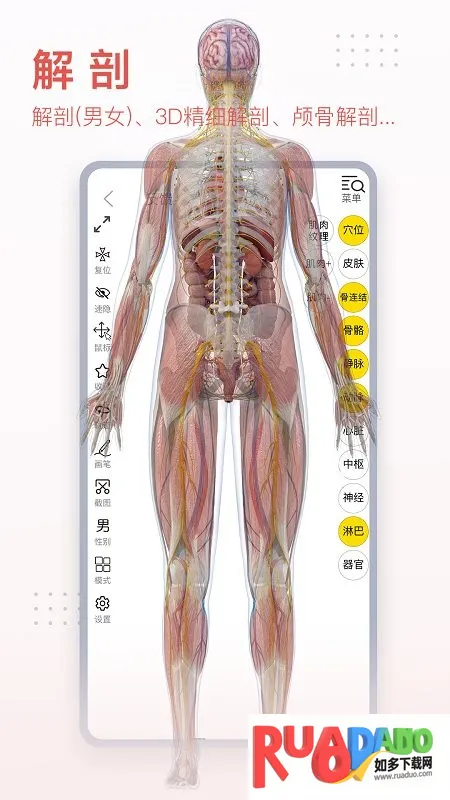 1. 涵盖人体所有解剖系统,能帮助用户轻松、直观理解人类结构。