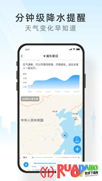 2. 天气信息全面完备,有实时预报、分钟级降雨预告等。