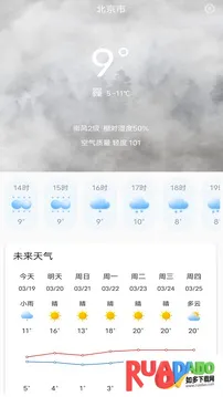 知云天气预报能帮你轻松掌握天气情况。它可以提供24小时天气预报、15天内天气预测,还有空气质量、生活指数等多种服务。不管是出门旅行还是日常出行,都能依据精准的天气信息提前做好准备,规避灾害天气。软件采用权威数据源授权预报信息,覆盖全国20多万个城市。能自动准确定位,还有语音预报,就算退出app,系统也会在后台推送天气预报通知栏消息,点击就能快速跳转查看城市天气详情。天气卡片界面还能通过第三方平台分享。你还可以自由添加关心城市,第一时间了解其天气变化。另外,它有实时空气质量指标,还加入了霾天气预报,数据24小时实时更新,界面精美,操作简单,有多种桌面插件可供选择,真的非常实用,赶紧下载试试吧!