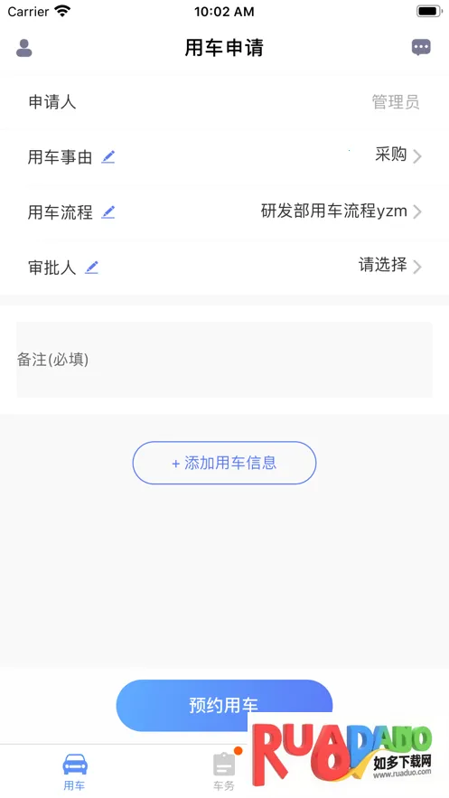 4. 具备多角色权限管理,用车人、审批人、司机分工明确。