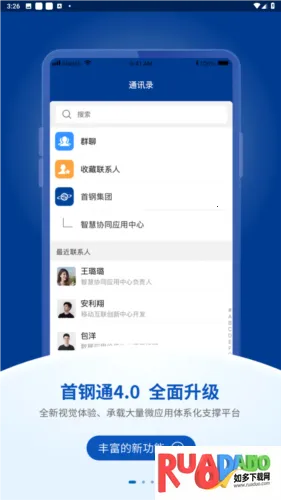 首钢通是首钢专为内部员工打造的办公软件,支持在线打卡、申请休假出差等,能快捷处理办公事宜,有云存储服务。还可表情回复消息、防刷屏,支持单条消息回复,显示已读未读,带来高效智能办公体验。