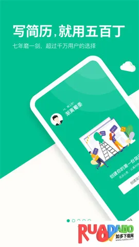 五百丁简历app是先进的智能简历在线制作平台,受超1000万求职者和HR喜爱。有海量模板,操作极简,三分钟可完成。还提供求职辅导、智能诊断等功能,助力用户高效制作有竞争力的简历。