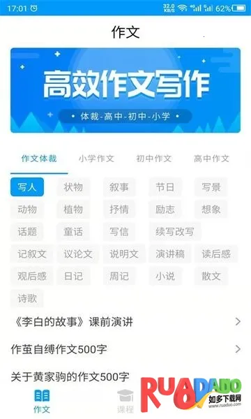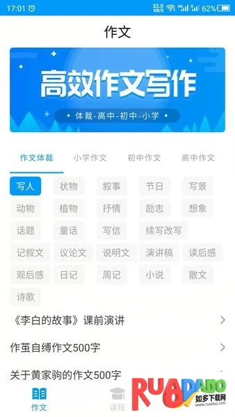 2. 可查看写作课程,学习丰富写作知识。