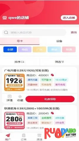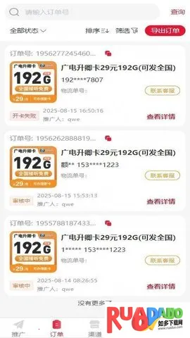 2. 提供搜索筛选功能,可快速定位目标号卡,集中管理推广订单。
