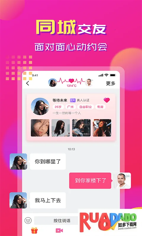 心心相印是一款真实交友脱单平台,通过智能匹配算法,帮用户找契合另一半。支持文字、语音、视频交流,有同城邀约等功能,用户信息真实,还有恋爱学堂等,助你轻松找到真爱。