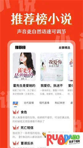 1. 汇集多种主题小说,可轻松浏览不同题材内容,一键免费收听。